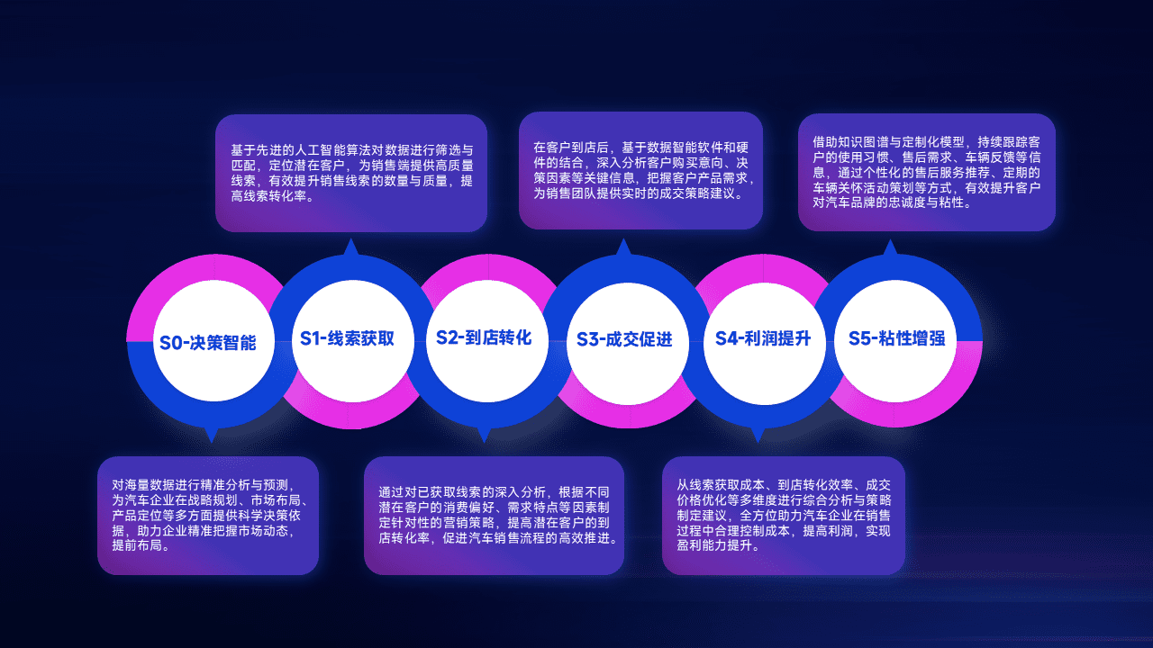 通过拓宽潜在客户来源、、、优化线索分配并提高到店转化率,,,以增强销售效率。。。。同时,,,利用线索数据不断优化分析模型,,有效提升转化率,,,扩大营销影响力。。